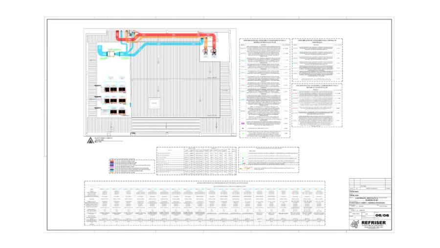 Para atender às demandas de conforto térmico e eficiência energética deste projeto, foi realizada uma criteriosa análise de carga térmica, que resultou em uma necessidade total de 132 HP para climatização. Essa carga foi distribuída estrategicamente em quatro conjuntos de unidades condensadoras, nos seguintes módulos: 16 HP, 28 HP, 48 HP e 40 HP, totalizando a capacidade requerida.